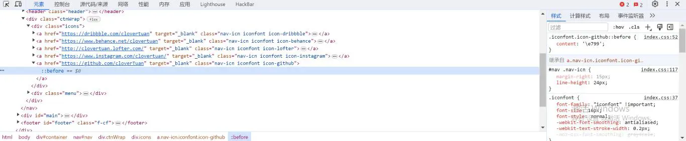 既然搞不懂,就去看看这究竟是怎么实现的。我直接简单粗暴地拿元素选择器框中了 GitHub 图标: