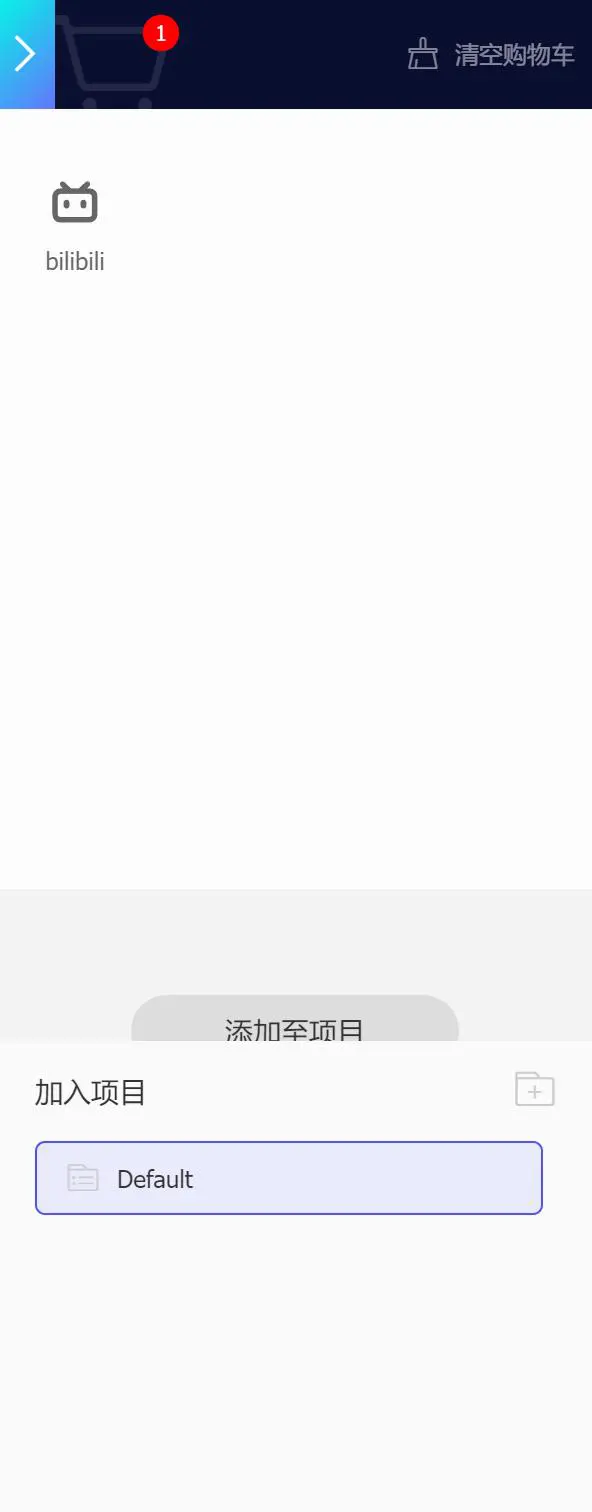 挑选完图标之后,点击网站右上角带红点的购物车,选择添加至项目(没有项目可以新建一个):