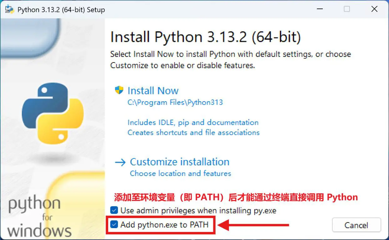 - 运行 Python 安装程序,一般按照默认选项即可,需要注意的选项如下